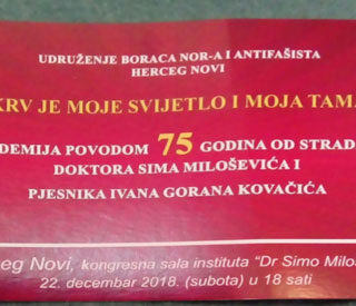 Udržunje boraca NOR-a i Antifašista Herceg Novog organizuje Akademiju povodom 75 godina od stradanja Doktora Sima Miloševića i pjesnika Ivana...