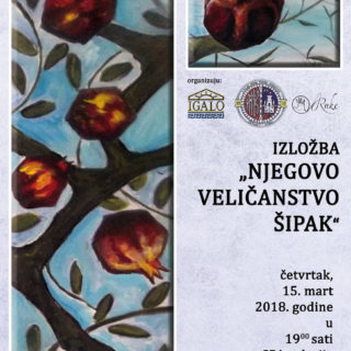 četvrtak, 15. mart u 19 časova Izložba “Njegovo veličanstvo šipak” u SPA galeriji Instituta “dr Simo Milošević”