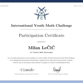 Milan Lečić, učenik IIIb odjeljenja naše škole kvalifikovao se za drugi krug takmičenja International Youth Math Challenge 2020. Takmičenje se...