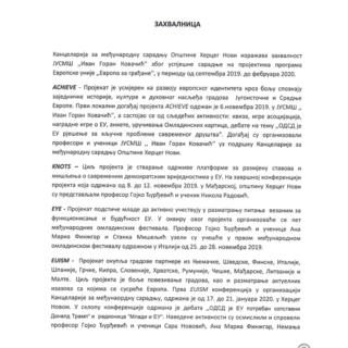 Kancelarija za međunarodnu saradnju Opštine Herceg Novi izražava zahvalnost JUSMŠ “Ivan Goran Kovačić” zbog uspješne saradnje na projektima programa Evropske...