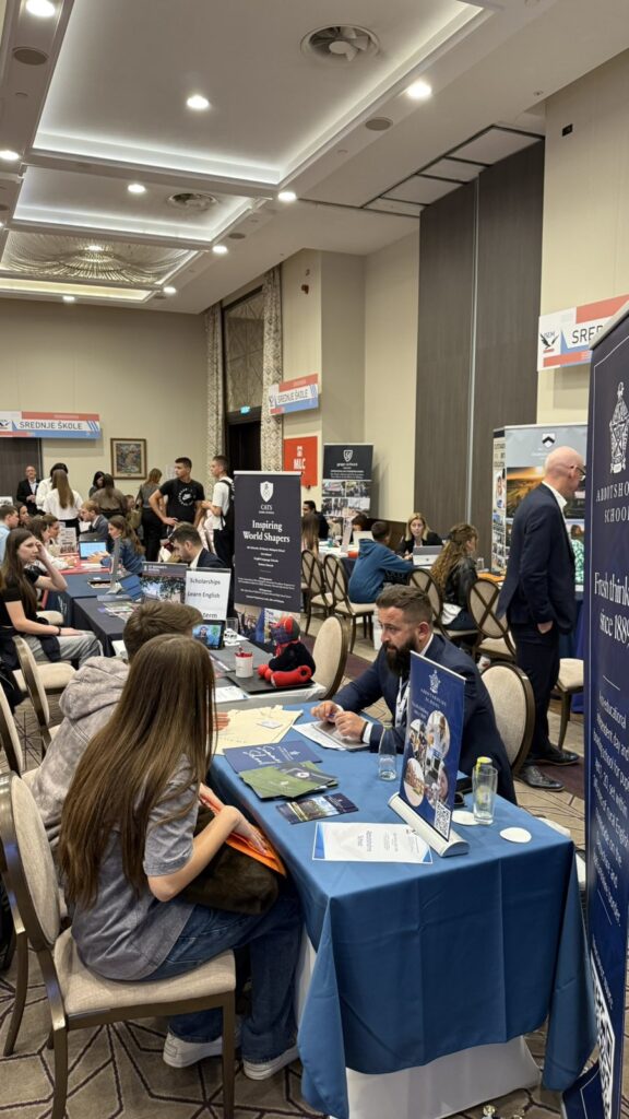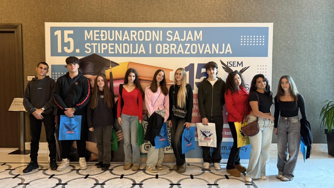 Dana 14.10.2025.godine, učenici različitih smjerova naše škole, u pratnji profesorica Milene Radulović i Jovane Tatalović, prisustvovali su Sajmu stipendija održanom u Podgorici. Sajam je organizovala agencija ISEM, a zemlja partner bila je Austrija. Tokom sajma učenici su imali priliku da se upoznaju sa brojnim programima razmjene, stipendijama, kao i mogućnostima studiranja u inostranstvu (BA, MA i PhD programi). Posebno zanimljivo bilo je akademsko usmjeravanje putem Harrison Assessments programa, koje pomaže mladima u odabiru buduće karijere.