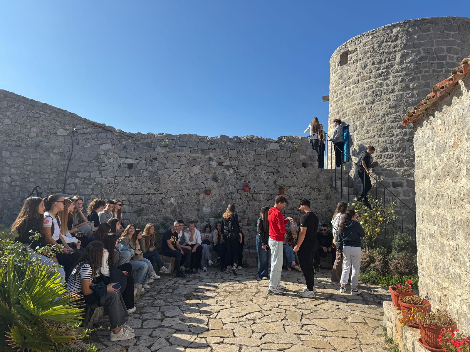 More je bilo mrino, a nebo vedro, prava bonaca — idealan dan za izlet. Ukrcali smo se na brodić koji nas je poveo duž obale, prema otvorenom moru i ostrvu Mamula, jednom od najpoznatijih simbola ulaza u Bokokotorski zaliv. Tokom plovidbe, uz povjetarac i talase, učili smo o geografskom položaju ovog dijela obale i istorijskom značaju Mamule. Na samom ostrvu, koje je nekada bilo austrougarska tvrđava, razgledali smo zidine i saznali brojne zanimljivosti o njegovoj burnoj prošlosti i savremenoj namjeni.