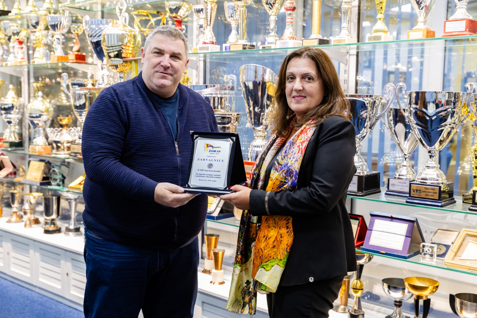 Dana, 26.novembra 2025. godine u trofejnoj sali kluba PVK „Jadran“, našoj školi dodjeljena je zahvalnica za uspješnu saradnju i podršku u postizanju vrhunskih rezultata.